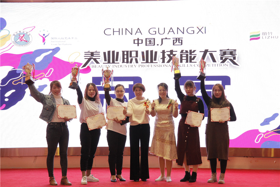 獲獎名單:吳冠芹(美容)、吳秀妮(美發(fā))、蒙金妮(美甲)、趙小花(紋繡)盧艷芳(彩妝)
