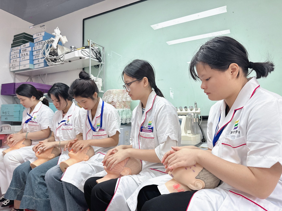 從零開始學(xué)美容、南寧美容基礎(chǔ):面部上分類了那么多個(gè)重要的xue位,怕自己記不住,也怕學(xué)不會(huì)?如果你現(xiàn)在還有這個(gè)顧慮,恰巧南寧美容專業(yè)正規(guī)學(xué)校(麗竹美容專業(yè)正規(guī)學(xué)校)剛剛進(jìn)班的同學(xué)正在進(jìn)行美容第 一 課的學(xué)習(xí),一起去看看吧!